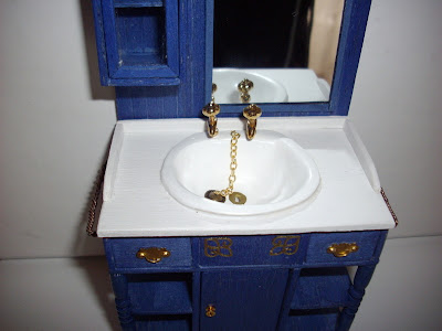 El lavabo fue todo un reto, porque pense en hacerlo ovalado como mi lavabo de verdad, y cuando ya tenia cortadas todas las maderas y montado el mueble me di cuenta del lio en el que me habia metido.